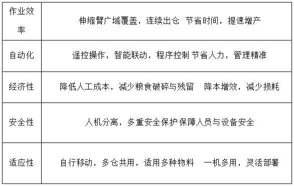 自動(dòng)伸縮式出倉(cāng)機(jī)簡(jiǎn)化出倉(cāng)過(guò)程,可伸縮設(shè)計(jì)減少設(shè)備挪動(dòng),加大出倉(cāng)作業(yè)面積,將出倉(cāng)工作從繁重,低效轉(zhuǎn)變?yōu)榭焖?,_干凈的流程。